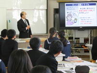 2月28日(月)の1校時~4校時の家庭科の時間(各クラス1時間)で、2年生を対象とした「めざそう!賢い消費者」と題する中学生向けの消費者教育を行いました。
